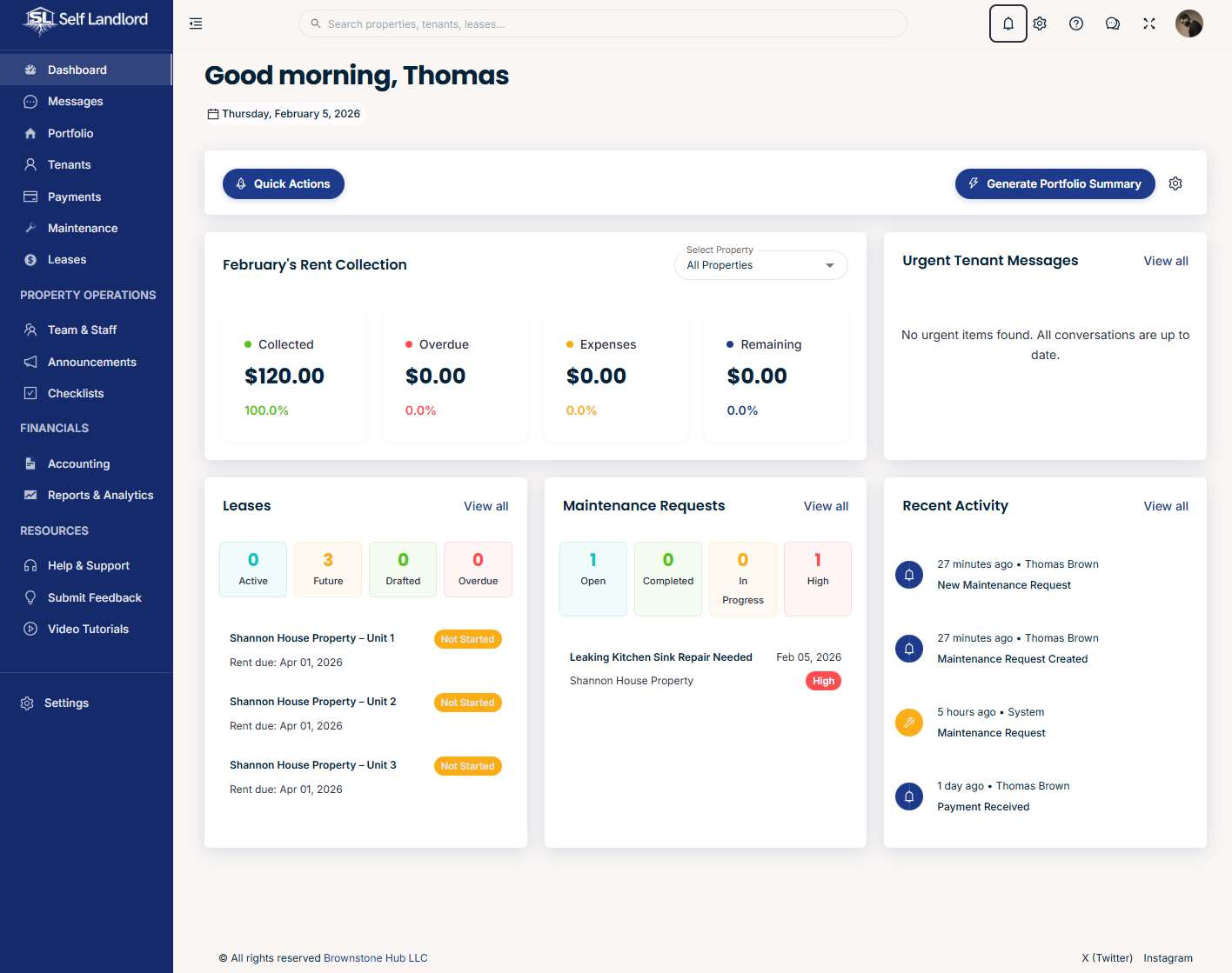 Property management essentials at no cost: rent collection, maintenance tracking, leases, and more. Premium features like LeaseShield available on paid plans.